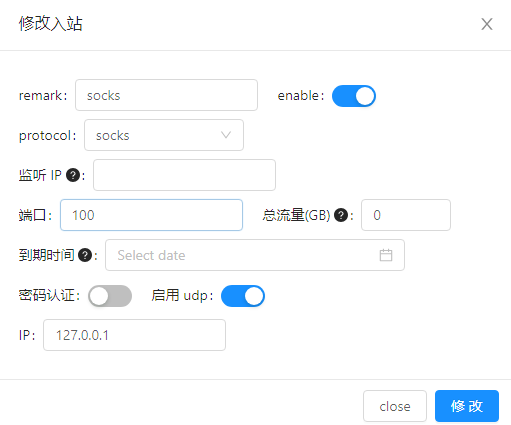代理服务推荐使用X-UI,不仅可以很方便地搭建v2ray,trajon等代理服务,也可以搭建socks、http代理: